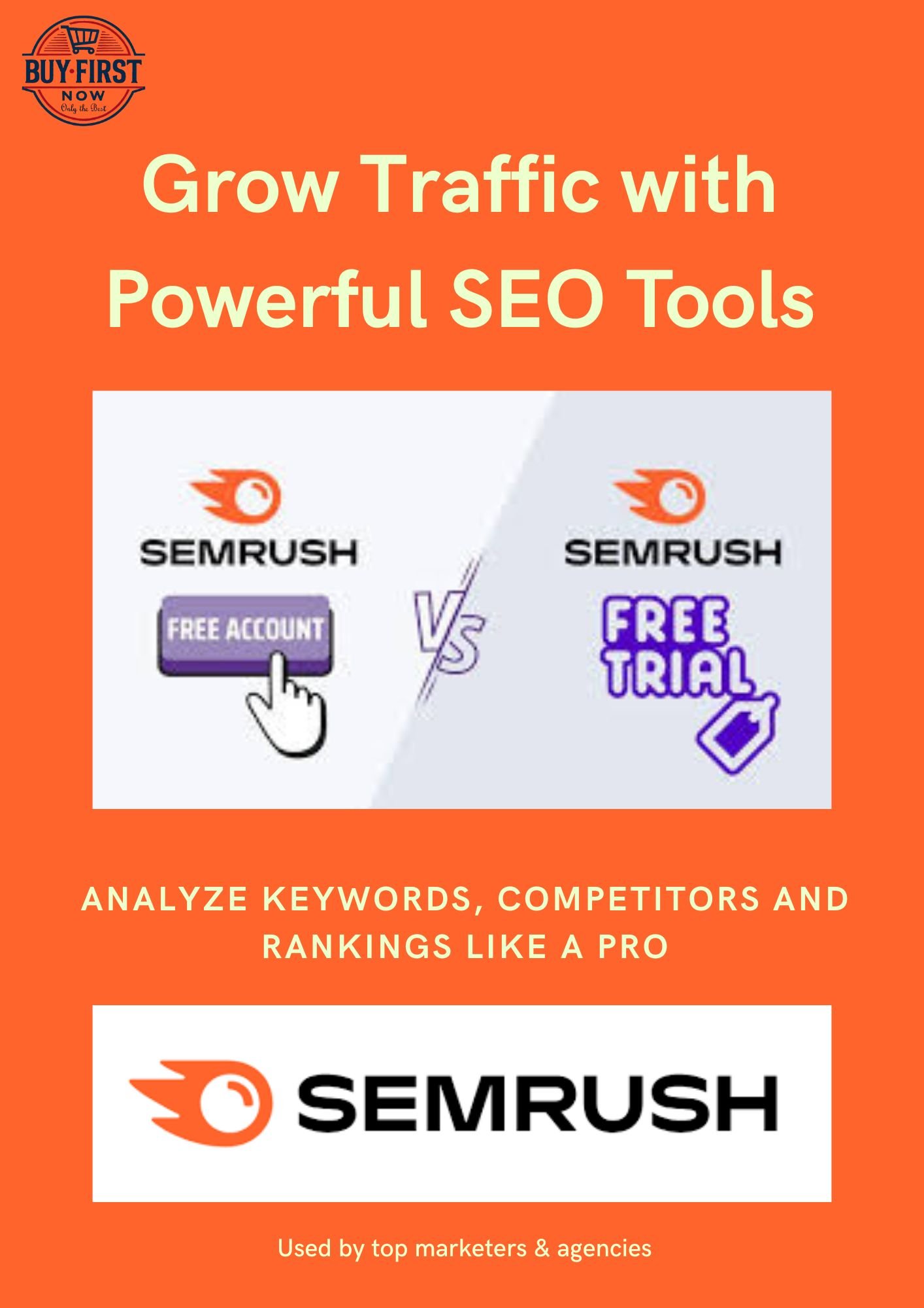 SEMrush is an all-in-one digital marketing toolkit trusted by professionals worldwide to grow traffic and outrank competitors. It helps you discover profitable keywords, analyze competitors, track rankings and optimize your website for search engines. With powerful SEO, content and PPC tools, SEMrush gives you clear data to make smarter marketing decisions. Whether you’re running an affiliate website, blog or online store, SEMrush helps you identify what works and fix what doesn’t. Its easy-to-use dashboards turn complex data into actionable insights. Start optimizing your website with confidence using SEMrush.